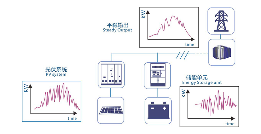針對風(fēng)能或太陽(yáng)能發(fā)電不連續、不穩定、不可控的特點(diǎn),我司提供配套的儲能系統,可平滑風(fēng)力及光伏發(fā)電輸出,實(shí)現跟蹤計劃發(fā)電。
