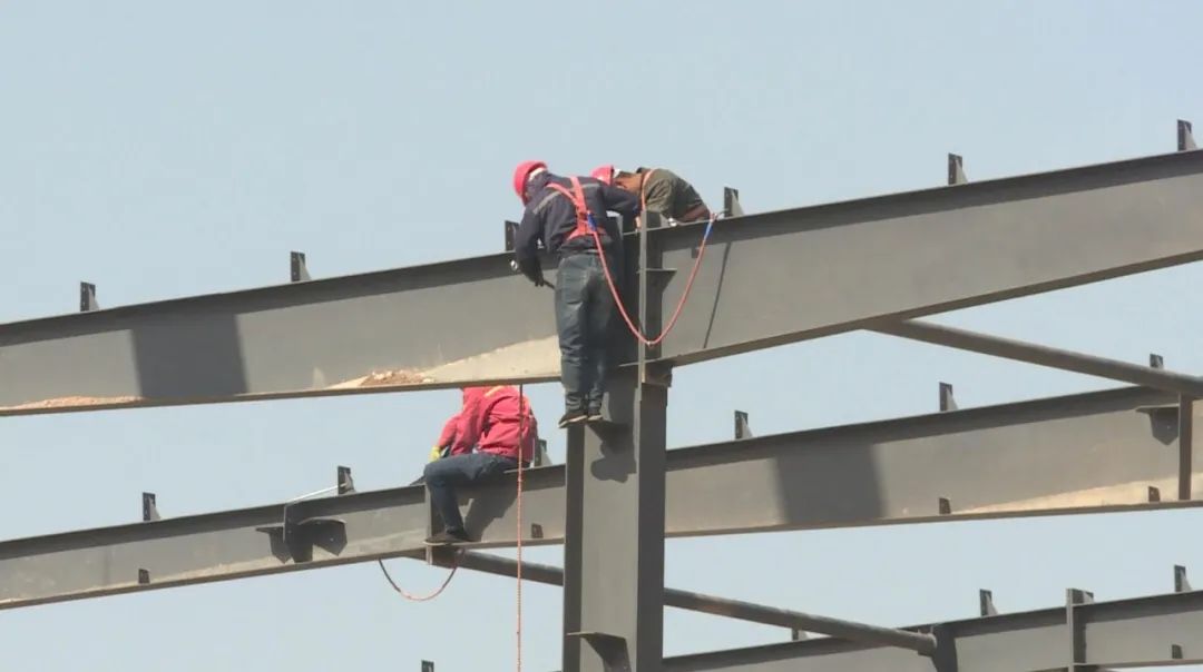 在金昌漢星能源有限公司項目施工現場(chǎng),記者看到,項目所需建筑材料已陸續到位,隨著(zhù)最后一根鋼梁被吊起安裝到樓頂的預定位置上,該項目的2棟主體鋼結構廠(chǎng)房已全部實(shí)現封頂。記者通過(guò)樓梯進(jìn)入其中一棟樓內部,看到三層樓頂的線(xiàn)路和管網(wǎng)安裝已經(jīng)完成,施工人員一邊對腳手架進(jìn)行固定,一邊對鋼筋綁扎進(jìn)行檢查。